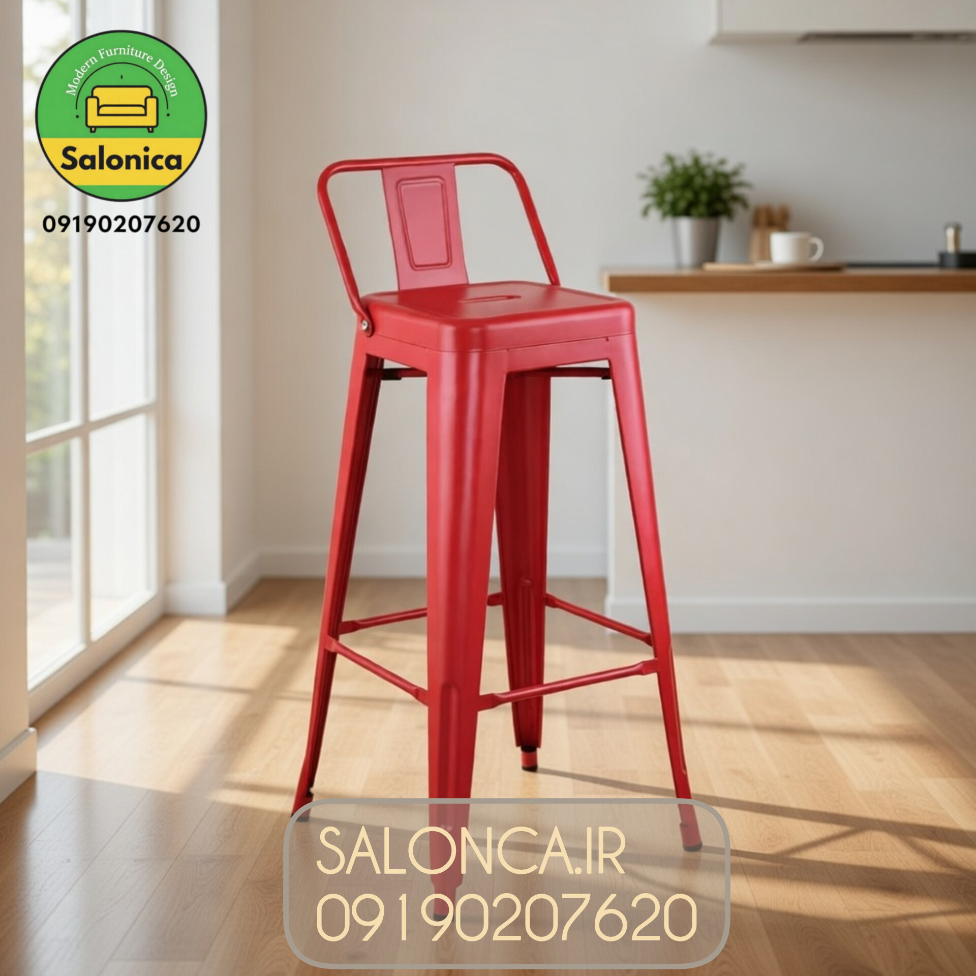 دارای پشتی و بدون دسته دارای پایه ثابت و رکاب دار ضدرطوبت مناسب برای مصارف خانگی،رستوران ها و کافی شاپ